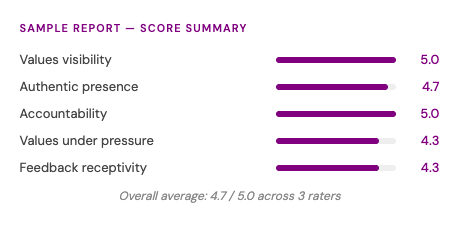 This is a structured 360 feedback process for individual leaders who want external, evidence-based insight into how they show up, without the full program commitment. Your raters respond to five dimensions of authentic leadership and you receive a full written report — your Leadership Signature, your shadow side, your growth edge, and specific actions to take within 90 days.